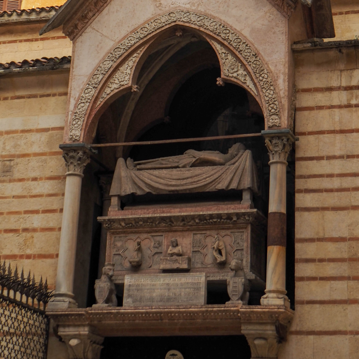 The poet stayed with the powerful Scaligeri family. This family built castles, arched bridges, and palaces in Verona. They also adorned the city walls with elegant frescoes.