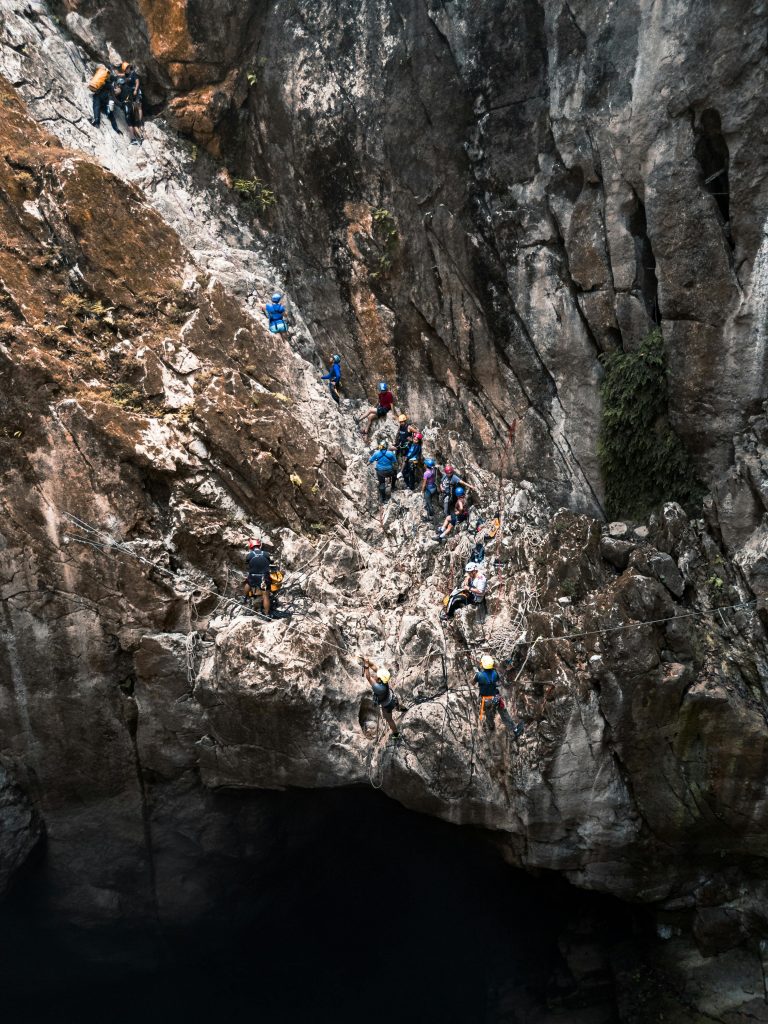 Ensuite, vous débuterez la descente du canyon, d’une durée d’environ 2 heures, selon le groupe. Vous passerez par des étapes excitantes, comme des rappels jusqu’à 10 mètres et des sauts de 5 mètres (les sauts sont facultatifs). C’est une belle occasion de vivre des sensations fortes et de profiter de l’eau cristalline.