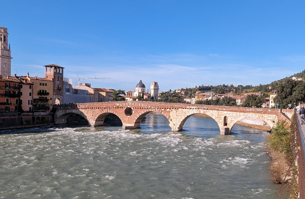 Le pont romain traverse l’Adige avec grâce. Ses arches anciennes impressionnent encore. De plus, sa vue sur Verona crée un cadre unique.